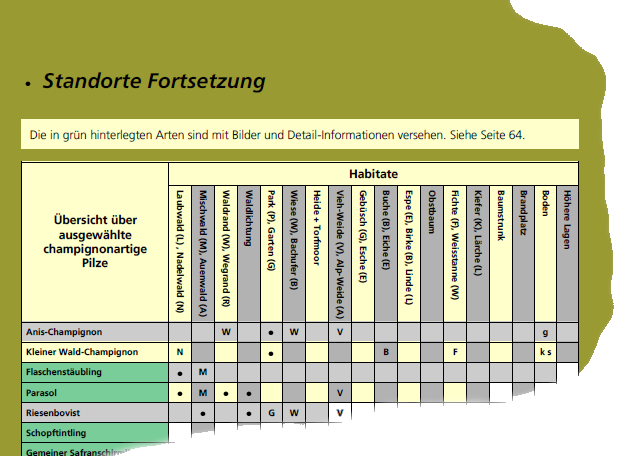 Was man sehr selten in der Pilzliteratur antrifft, sind tabellarische Gegenüberstellungen, was wächst wo in welcher Umgebung.