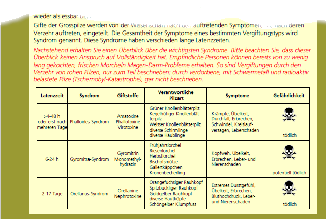 Übersichtliche Darstellung der Pilzgifte mit ihren Syndromen findet man selten.