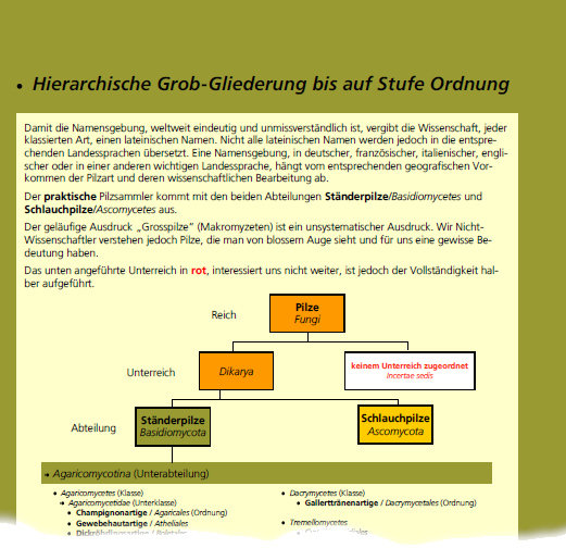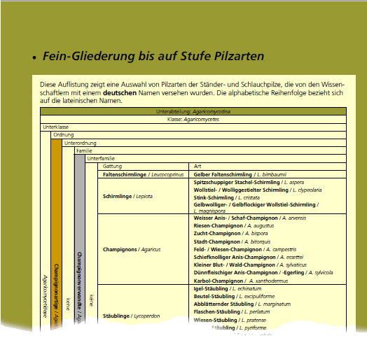 Feingliederung von mehr als 750 erfassten Pilzarten mit deutschen Namen