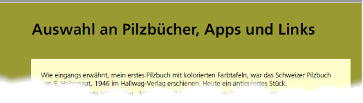Meine meist verwendeten Pilzbücher (gesamthaft sind es über 30) habe ich persönlich bewertet und mit Identifikations-Angaben versehen.