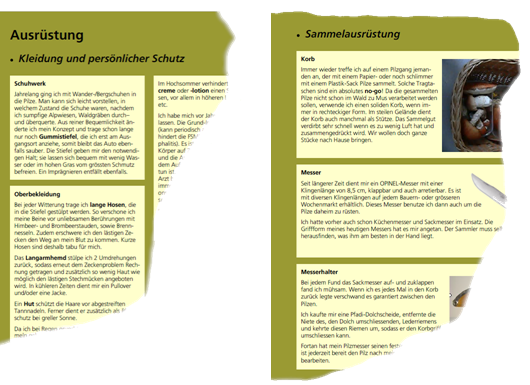 Ich legte Wert auf die gängigsten lokalen Pilzarten, jedoch mit detaillierten Beschreibungen und Detail-Ansichten.