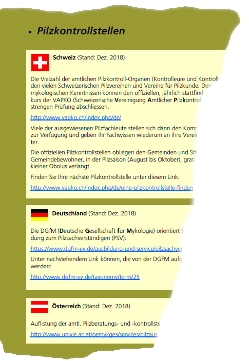 Für die Schweiz, Deutschland und Österreich sind die entspr. Links aufgeführt, wo man sich vor einem Pilzgang entsprechend informieren kann.